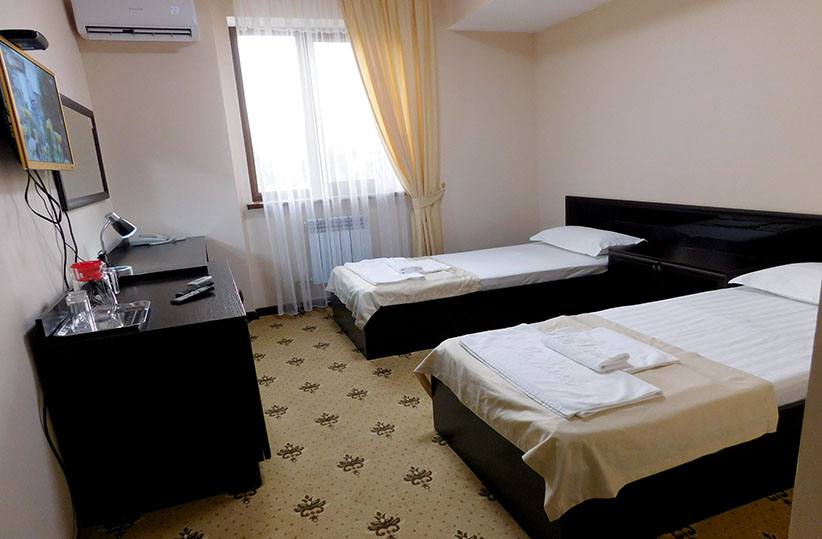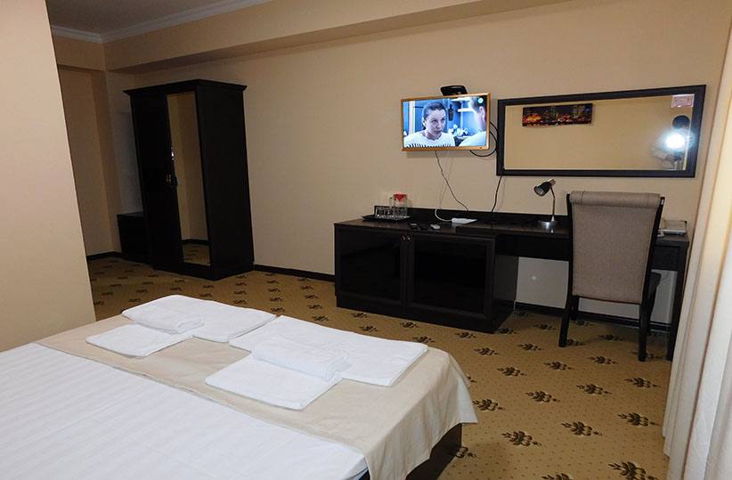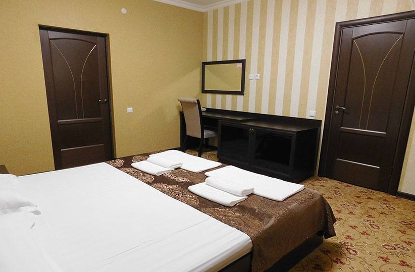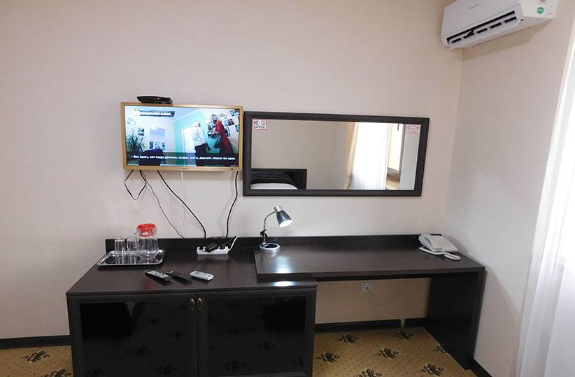 В Санатории имеются 70 номеров категорий «люкс», «полу люкс» и «стандартный». В каждом номере есть плазменный телевизор, спутниковое телевидение, WiFi, холодильник, кондиционер, фен, сейф, полный сан. узел. На основе пресной воды идет приготовление пищи, заполнение бассейна и использование ее в технических целях. В каждом номере вам предоставят халаты, полотенца, тапочки и средства личной гигиены (мыло, шампунь, зубную пасту и щетку). В здании санатория работает бесшумный лифт.