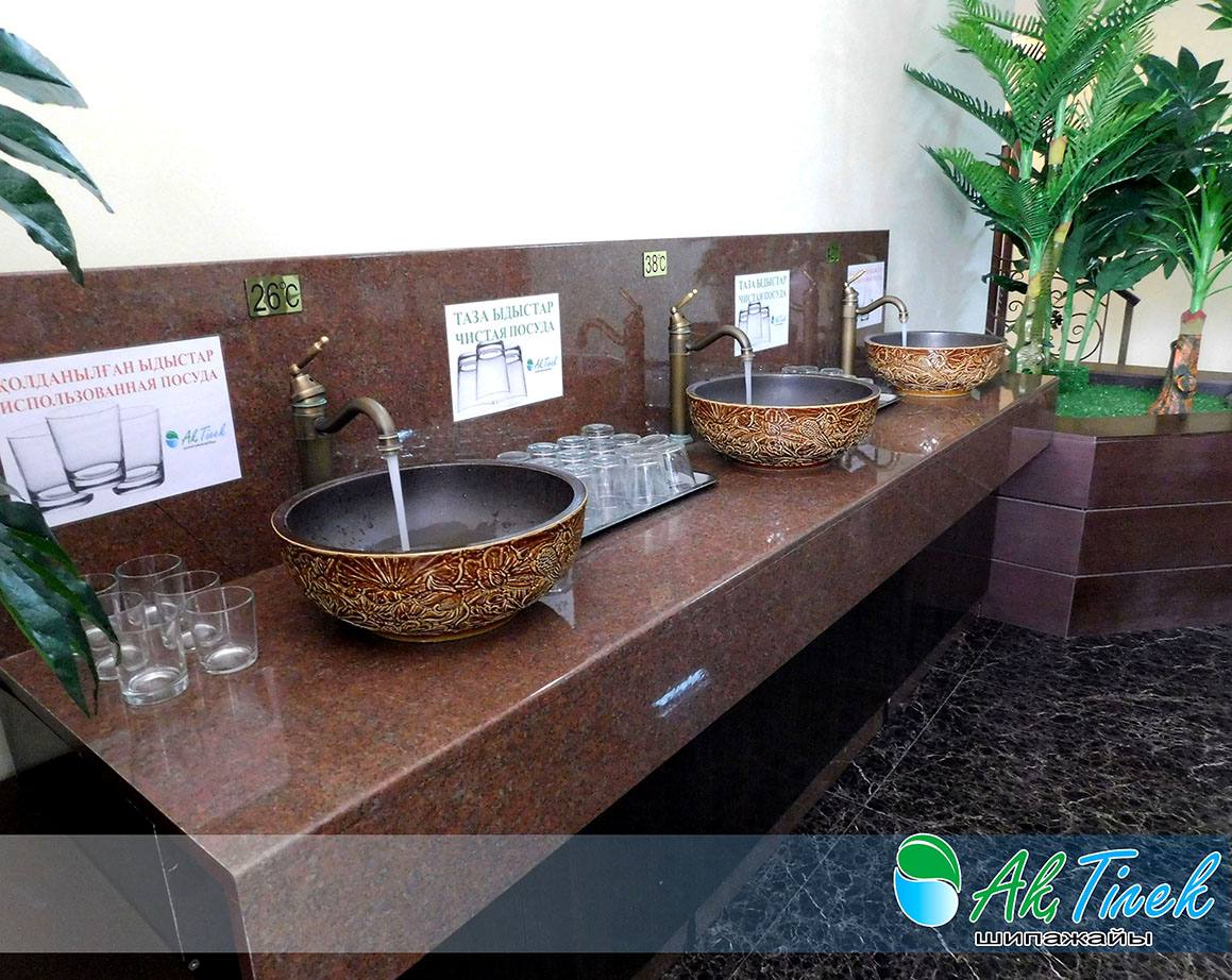 Внутри Санаторий оснащен собственным бюветом, который на прямую подсоединен к источнику "Асем-Ай", где можно пить минеральную воду в трех градусах 22°С, 38°С, 42°С.