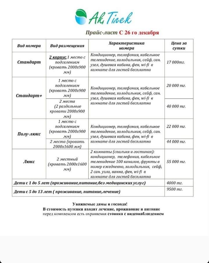 Инфраструктура: К услугам отдыхающих мы можем предложить: тренажерный зал, сауна, солевая шахта, бассейн, намазхана.